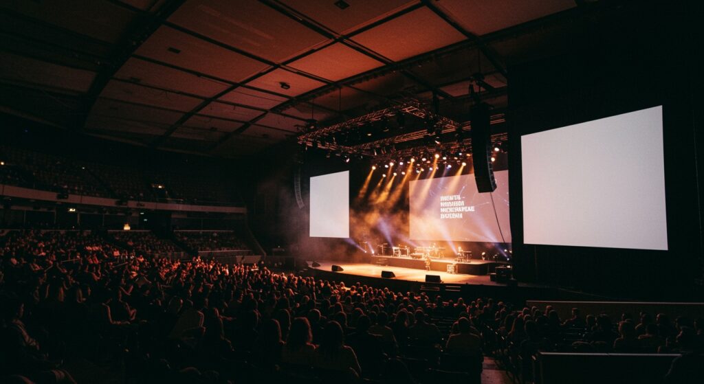 Stages and Podiums: Essential for key speakers, panel discussions, and award ceremonies. Using a stage makes sure the people speaking are easy to see from every seat in the room. Podiums keep notes and microphones secure.